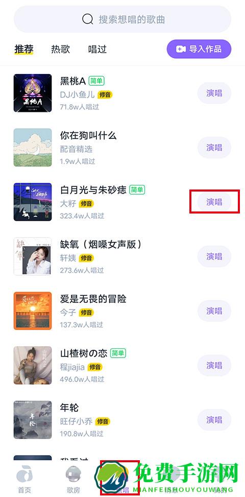 1、在免费手游下载最新版本的回森app,打开软件先录制一段作品,在“点唱”页面找到想要唱的歌曲,点击“演唱”。