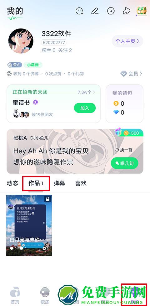 1、在“我的”页面,点击作品。