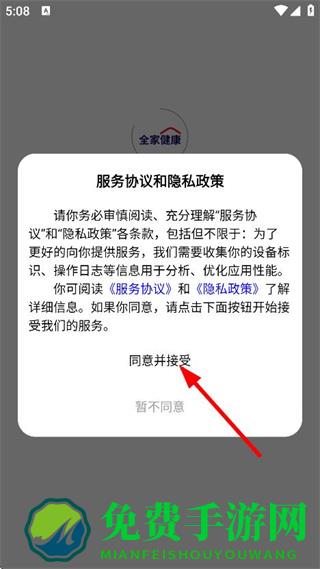 1、在服务协议和隐私政策弹窗中,点击同意并接受,进入登录注册页面。