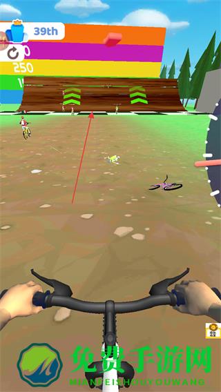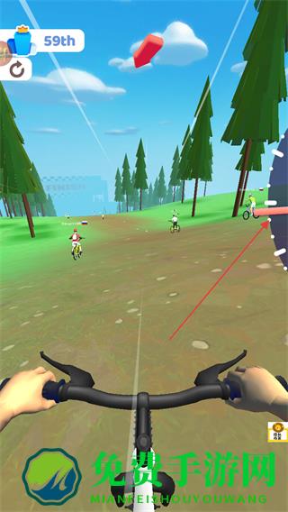 1、进入游戏,留意屏幕左上角排名,如59th,操控自行车在赛道前进。