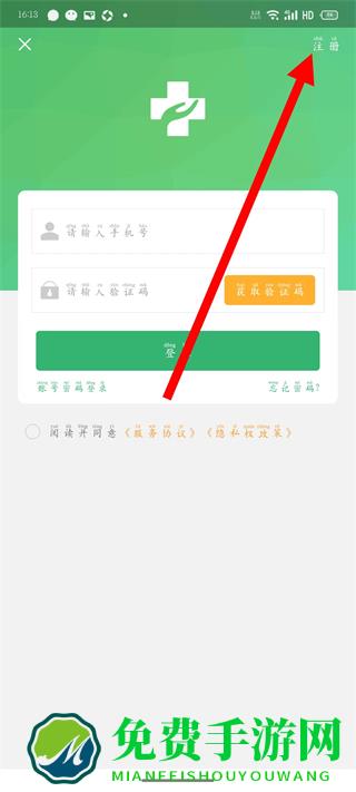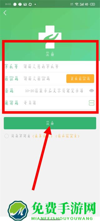 4、依次填写手机号、验证码等信息,点击注册,完成注册。