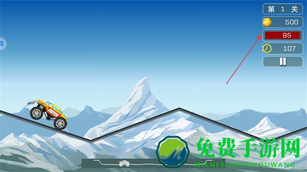 2、注意屏幕右上方的红色能量条,行驶中避免过度颠簸损耗能量。