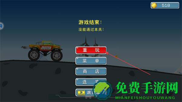 1、进入第1关,点击屏幕右侧的油门按钮控制大脚车前进。