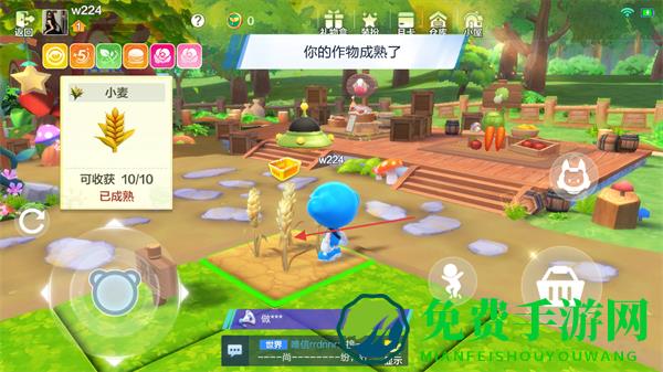 4、收到你的作物成熟了提示后,点击成熟的小麦进行收获。