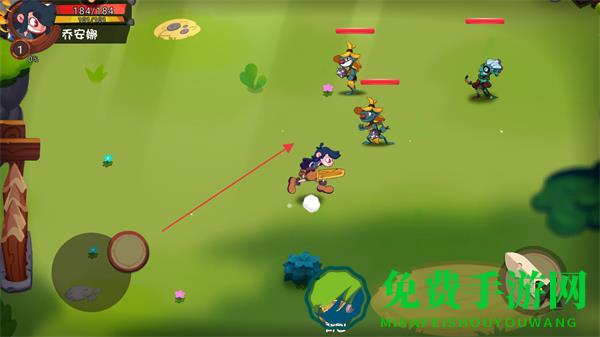 1、进入游戏场景,通过左下角虚拟摇杆控制角色如乔安瀚移动,靠近敌人。