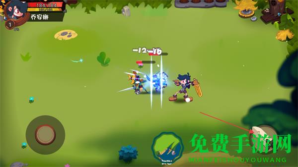 2、当敌人进入攻击范围,点击右下角攻击按钮对敌人进行攻击,注意观察敌人血量变化如出现的-12,-10。