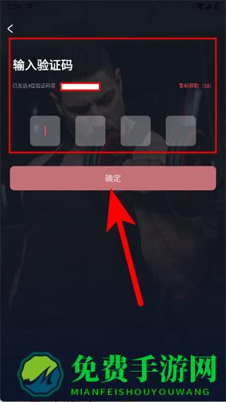 4、在输入验证码页面,输入收到的验证码后,点击确定,完成注册登录。
