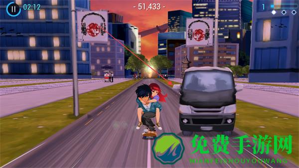 3、滑行过程中,注意躲避前方出现的障碍物如车辆,保证角色安全。