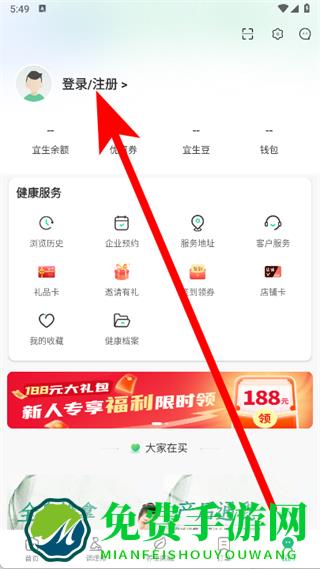 3、在我的页面,点击登录注册,进入登录注册页面。