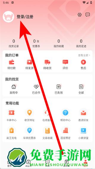 2、在个人中心页面里,找到并点击登录注册区域,进入登录注册界面。