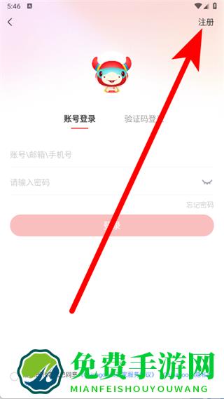 3、进入登录注册界面后,点击右上角的注册按钮,切换到账号注册页面。