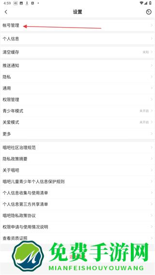 4、进入设置的页面内,点击账号管理的功能按钮。