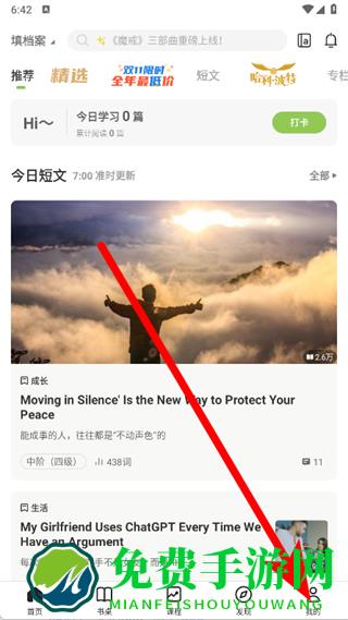 每日完成阅读任务可打卡,累计打卡获勋章激励,还能邀请好友组队打卡,借助社交监督减少半途而废,帮助用户养成持续阅读的英语学习习惯。