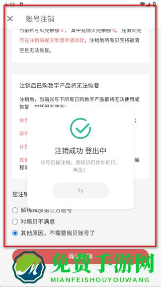 5、在账号注销页面,选择注销原因后,点击确认注销,完成账号注销。