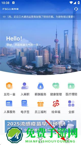 1、在上海外服APP首页,点击右下角我的,进入个人页面。