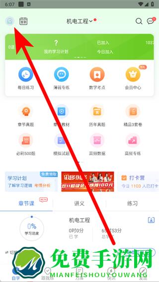 1、打开二建万题库,点击页面左上角的头像图标。