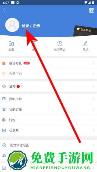 2、进入个人页面后,点击登录注册选项,进入登录页面。