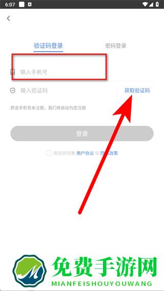 3、在验证码登录页面,输入手机号,点击获取验证码。