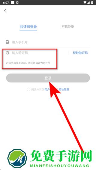 4、输入收到的验证码,勾选同意后,点击登录,完成注册。