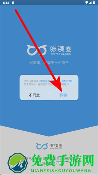 1、打开眼镜圈,在弹出的协议页面,点击同意。