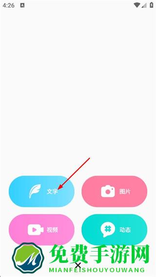 2、在弹出的发布选项中,点击文字按钮,进入文字编辑页面。