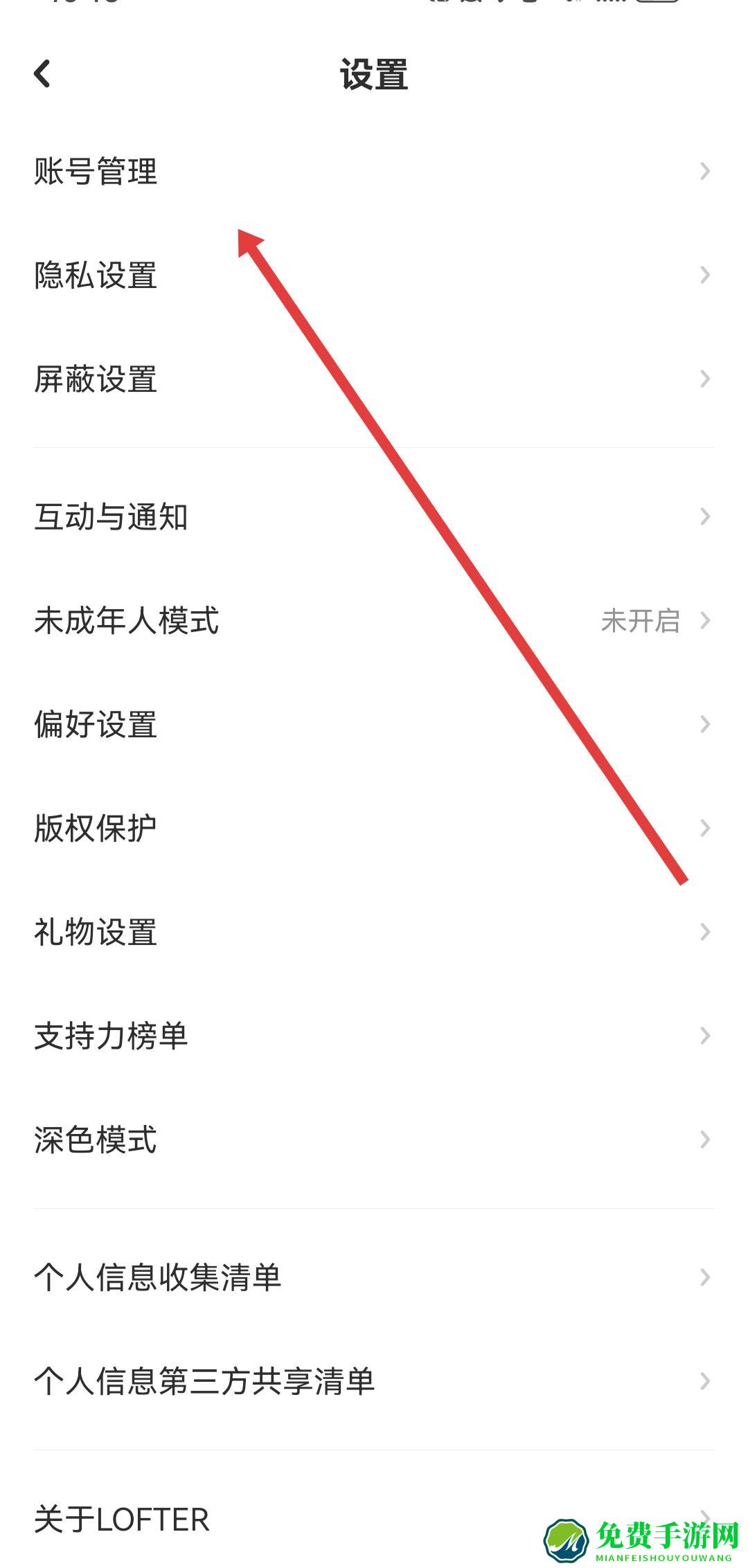 2、然后我们需要在个人账号设置的页面中,找到并点击账号管理的选项,进入账号管理的界面。