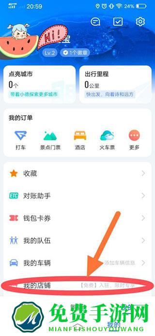 1、首先打开“高德地图”,在页面底部点击“我的”,然后点击“我的店铺”,如图所示;