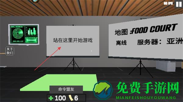 1、站在站在这里开始游戏的绿色区域,进入游戏场景。