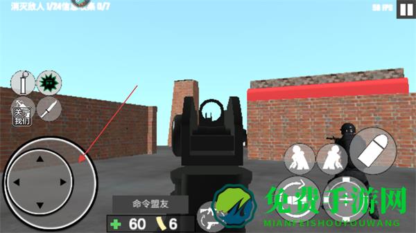 3、瞄准敌人,发射子弹消灭他们,同时可指挥盟友协同作战。