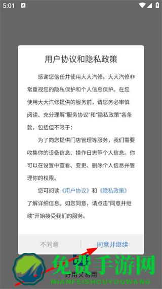 1、在用户协议和隐私政策中,点击同意继续,进入登录页面。