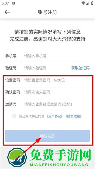 4、在账号注册页面,设置密码、确认密码,点击确认注册,完成账号注册。