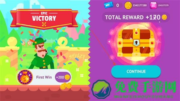 4、持续击败敌人,消耗对方血条至空,即可获得EPICVICTORY的胜利奖励,点击CONTINUE继续下一关。