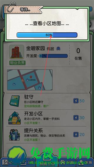 2、等待尝试进入小区,查看小区地图等进度条加载完成,逐步了解小区信息。