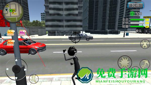 3、在街道上与车辆、行人互动,或进行战斗,积累金币。