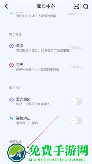 1、启动优酷少儿的应用,在家长中心的界面内找到并点击设置中心的按钮。