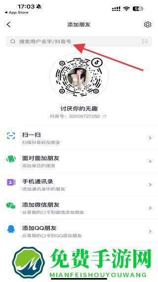 4、在添加好友页面的搜索框,输入对方的多闪ID或手机号。