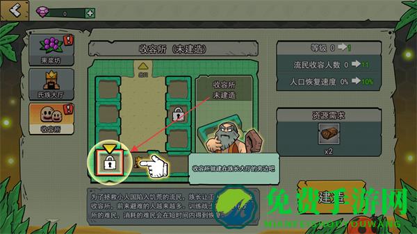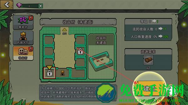 1、点击建造按钮,开启建筑建造流程,如建造收容所。