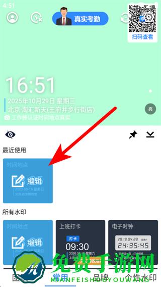2、在水印选择页面,点击时间地点水印的编辑按钮。