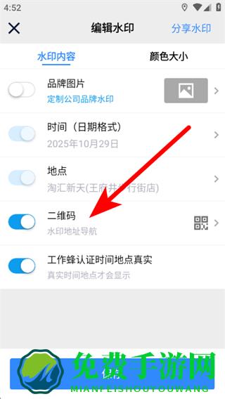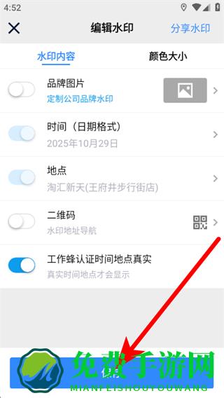 4、关闭二维码开关后,点击页面底部的保存按钮,即可取消水印中的扫码查看功能。