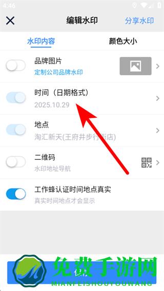 2、在编辑水印页面中,找到时间日期格式选项并点击。