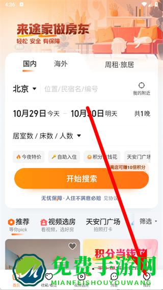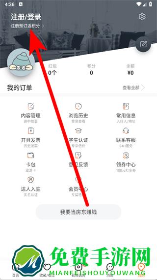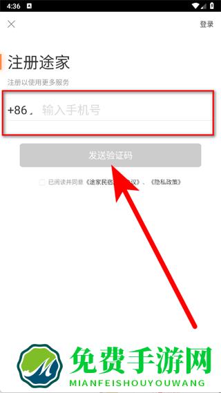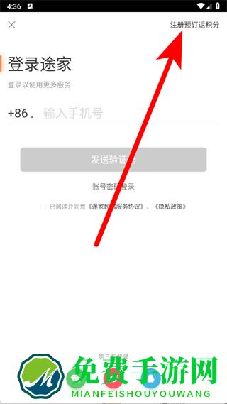 3、在登录界面下方,点击注册预订返积分选项,进入途家账号注册页面。