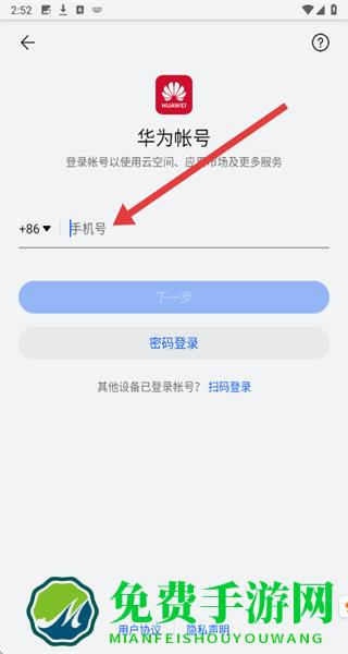 2、在登录账号页面中,点击输入框可以填写手机号,以便获取验证码进行登录。
