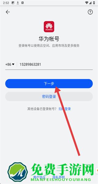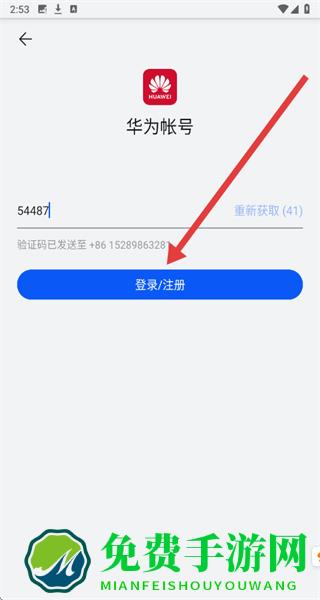 4、在验证码输入页面输入收到的验证码,点击“登录/注册”,完成华为账号登录操作。