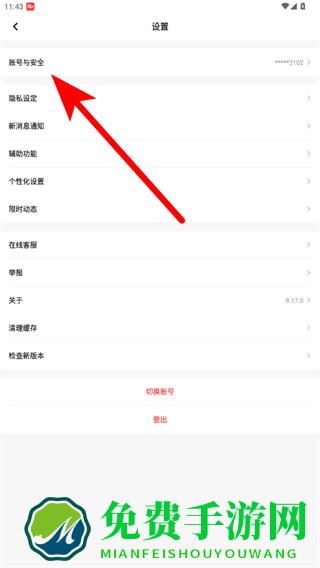3、在设置界面中,点击账号与安全选项,进入账号与安全界面。