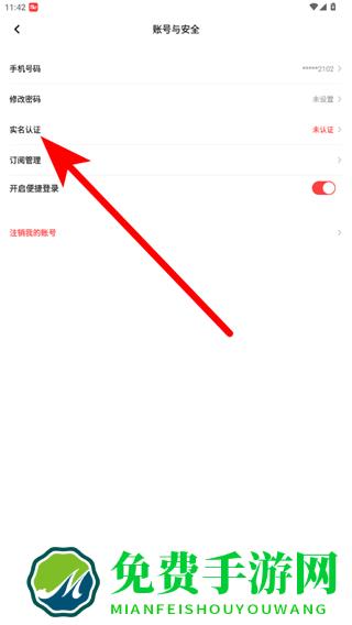 4.在账号与安全界面,点击实名认证选项,按照提示提交相关身份信息,完成实名认证操作即可。