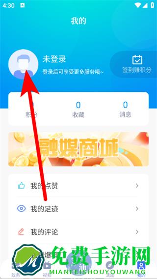 2、在个人页面,点击未登录头像,进入手机号登录页面。