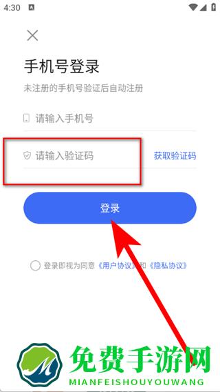 4、输入验证码,勾选用户协议后,点击登录,完成账号登录。