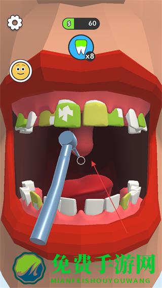 1、使用工具清理患者牙齿上的污渍,每次清理可获得金币和牙齿修复进度。