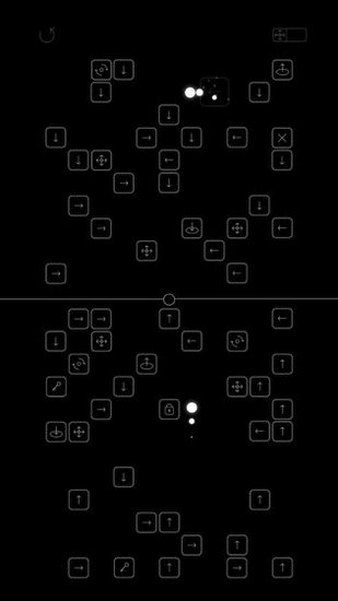 从宣传视频来看,游戏玩法应该是玩家提前布局(上下左右令小球变向的小方块,应该会有数量限制?),使得令上下半屏的小球(同时?)到达终点。