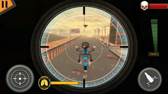 2、使用触屏游玩,游戏可以开镜、屏息、终结人物时还会有子弹追随镜头。